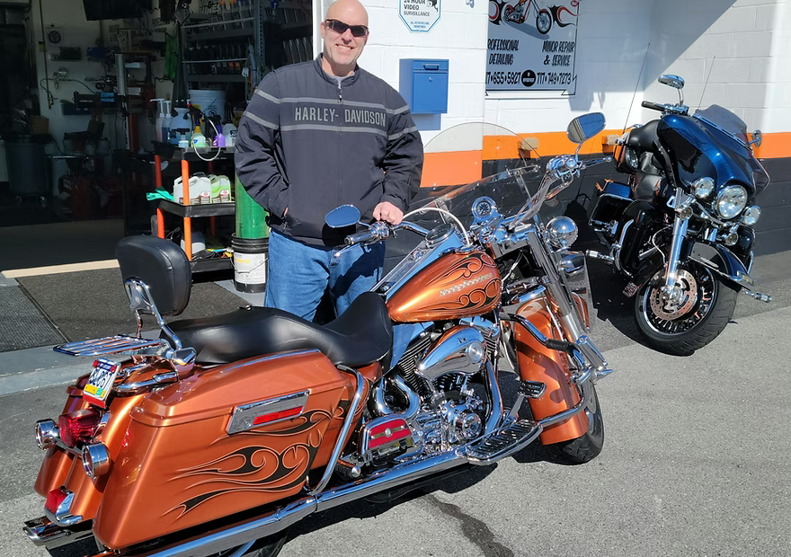 Bill brought in his 2012 Street Glide for a full detail. This is him after it was all done. Another happy biker!