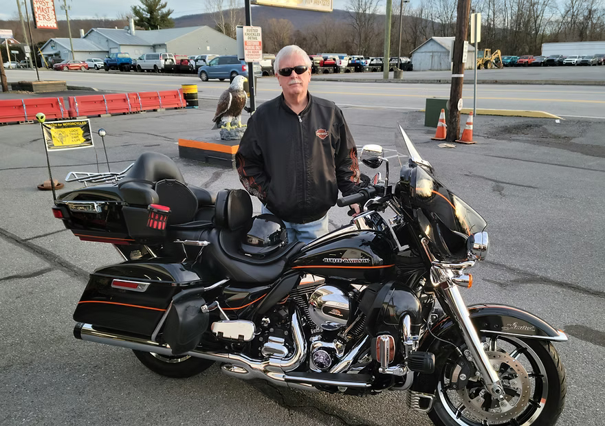 Bill and his 2005 Road King with Harley numbered paint set after a full detail!